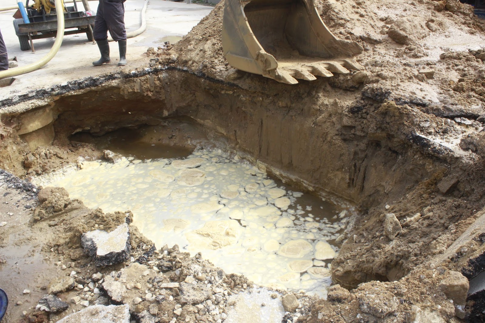 Eneo la barabara ya sita ambapo bomba limeharibika lenyewe kutokana na udhaifu maji yamepita mengi na limeshindwa kuhimili msukumo wa maji.