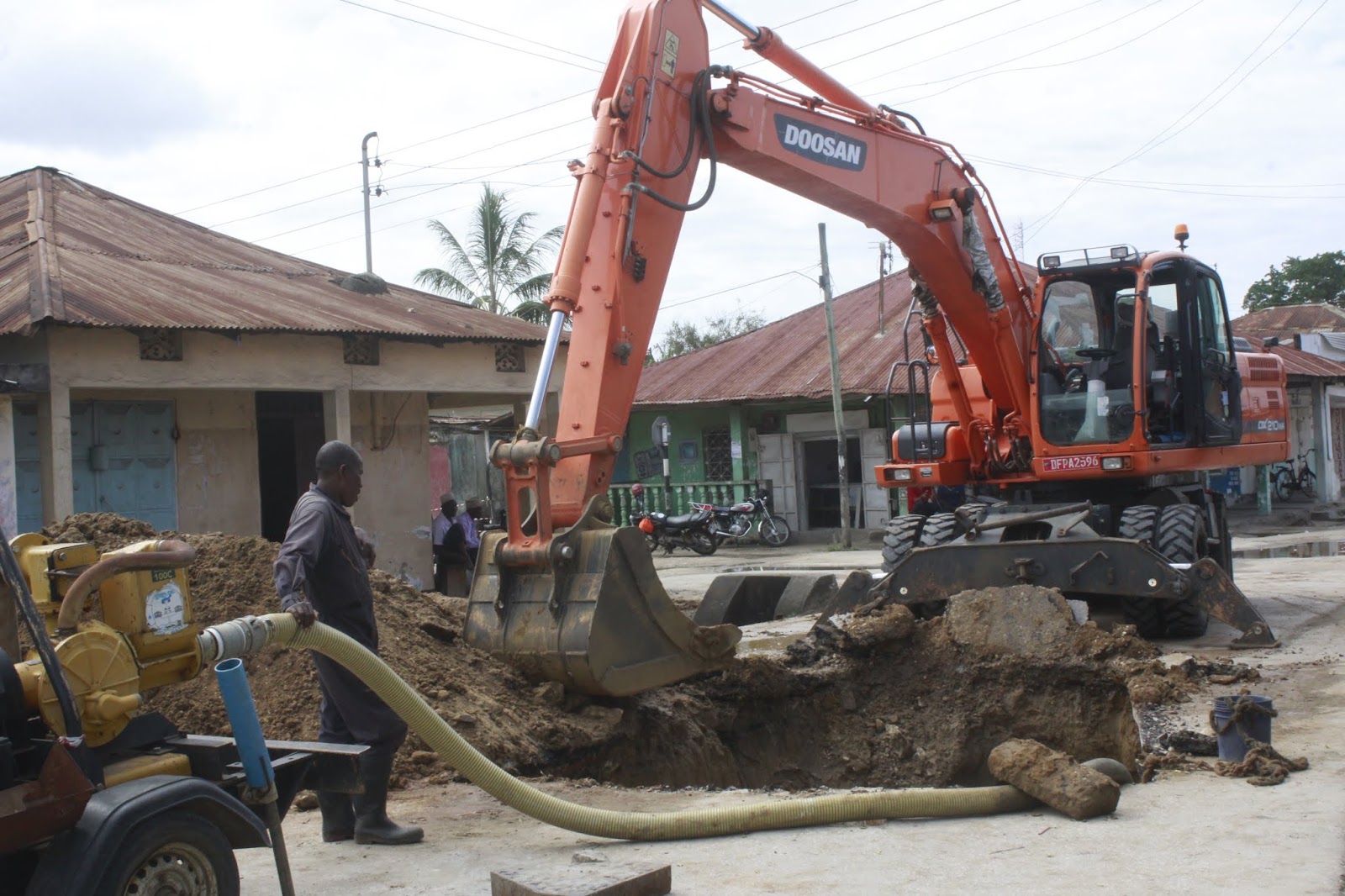 Mafundi wa Mamlaka ya Maji Safi na Usafi wa Mazingira Jijini Tanga (Tanga UWASA) wakiwa kazini kama wanaavyooekana