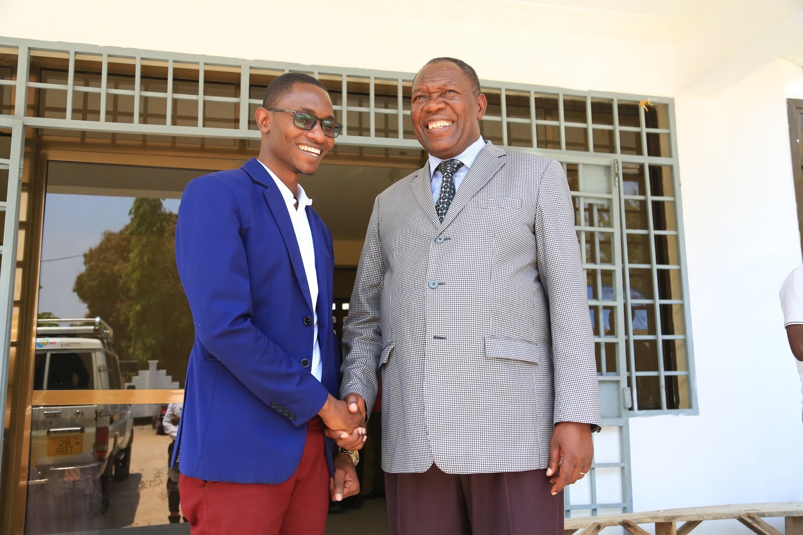 Mkuu wa Mkoa wa Tabora, Mhe. Aggrey Mwanry (kulia), akifurahia jambo na Afisa Uhusiano wa benki hiyo, Bw. Michael Kachala