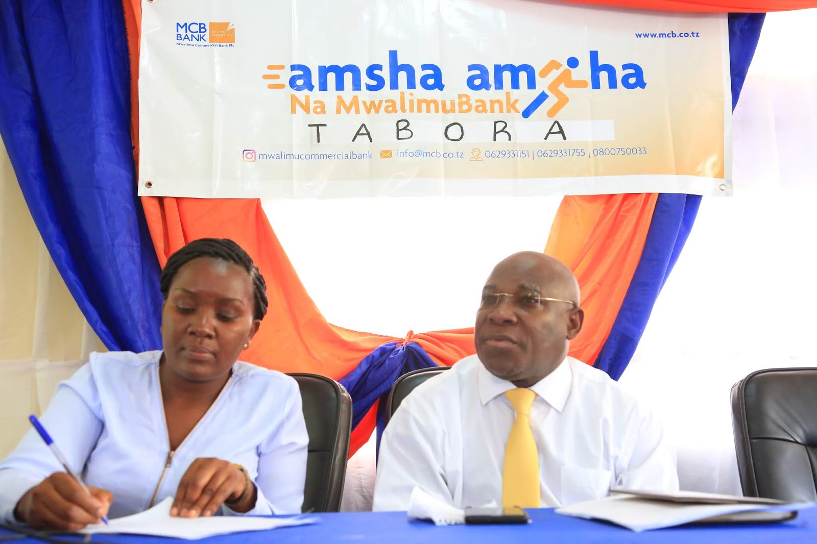 Afisa Mtendaji Mkuu wa Mwalimu Commercial Bank Plc. Bw. Richard Makungwa (kulia), akiwa na Kaimu Mkuu wa Biashara na Masoko wa benki hiyo. Bi. Leticia Ndongole wakisikiliza maoni ya washiriki. |