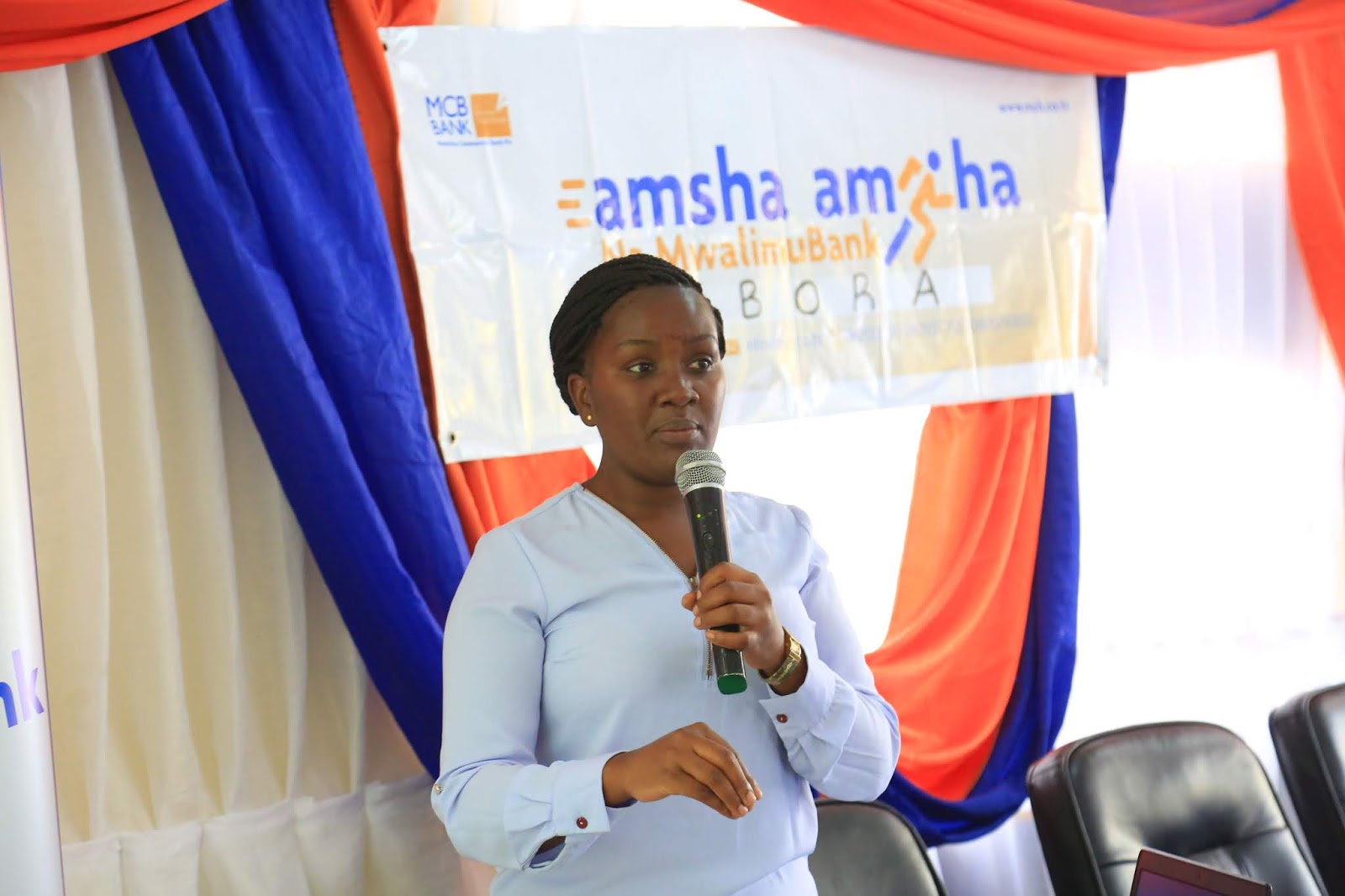 Kaimu Mkuu wa Biashara na Masoko Mwalimu Commercial Bank Plc. Bi. Leticia Ndongole akitoa elimu ya fedha kwa washiriki.