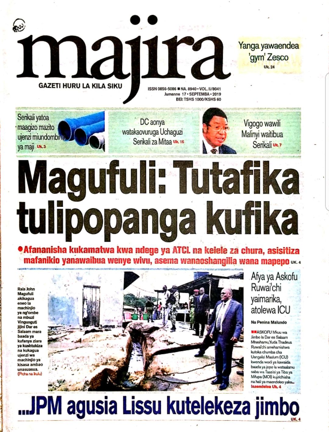MagazetiPITIA VICHWA VYA HABARI KATIKA MAGAZETI YA LEO JUMANNE SEPTEMBER 17,2019 Last updated: 2019/09/17 at 3:23 AM Alex Sonna 6 years ago Share SHARE Alex Sonna September 17, 2019 September 17, 2019 Share this Article Facebook Twitter Email Print Previous Article DAKTARI AWATAKA WAZAZI KUTORUHUSU WATOTO WENYE UALBINO KUCHUNGA MIFUGO Next Article MTOTO WA NAIBU WAZIRI WA ARDHI DAVID NA SANDRA WALIVYOMEREMETA KATIKA SHEREHE YA NDOA UKUMBI WA MALAIKA BEACH RESORT MWANZA