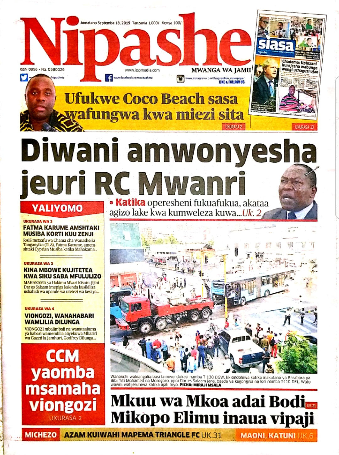 MagazetiPITIA VICHWA VYA HABARI KATIKA MAGAZETI YA LEO JUMATANO SEPTEMBER 18,2019 Last updated: 2019/09/18 at 3:25 AM Alex Sonna 6 years ago Share SHARE Alex Sonna September 18, 2019 September 18, 2019 Share this Article Facebook Twitter Email Print Previous Article ZIARA YA WAZIRI MKUU MKOANI MOROGORO Next Article TASAF KUNG’OA VIGOGO HALMASHAURI