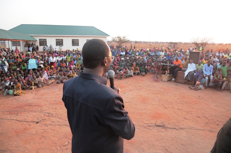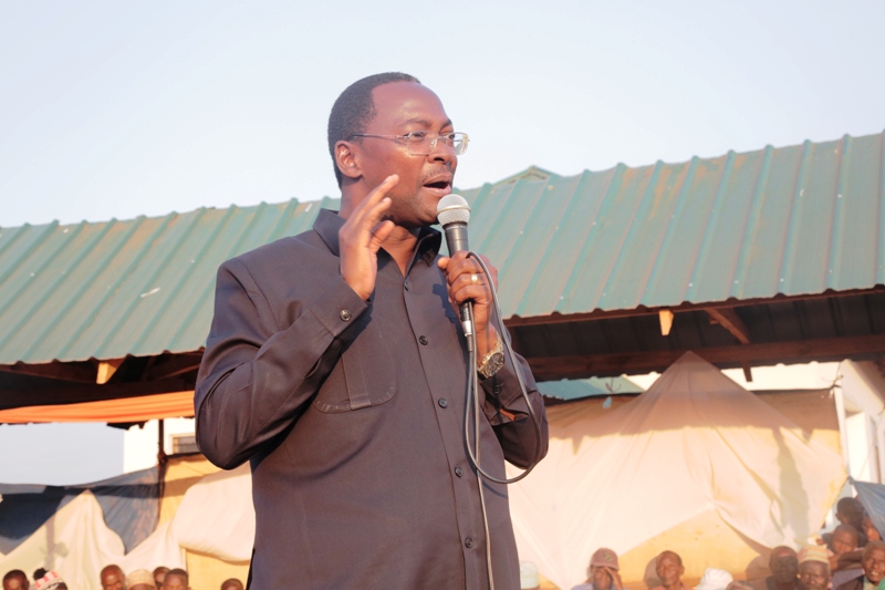 Waziri wa Nchi Ofisi ya Makamu wa Rais (Muungano na Mazingira), Mhe. George Simbachawene ambaye pia ni Mbunge wa Kibakwe akizungumza na wananchi wa Kijiji cha Pwagu wilayani Mpwapwa Mkoani Dodoma katika mkujtano wa hadhara ulioambatana na maombi maalumu alipofanya ziara ya kikazi.