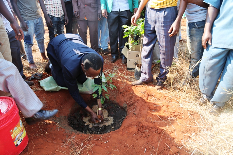 Mkurugenzi Mtendaji wa Halmashauri ya Wilaya ya Mpwapwa James Sweya akipanda mti katika kituo cha afya cha Pwaga.