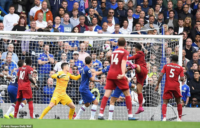 Roberto Firmino (wa pili kulia) akiifungia bao la pili Liverpool dakika ya 30 kufuatia Trent Alexander-Arnold kufunga la kwanza dakika ya 14, kabla ya N’Golo Kante kuifungia Chelsea dakika ya 71 Wekundu hao wakishinda 2-1 Uwanja wa Stamford Bridge mjini London kwenye mchezo wa Ligi Kuu ya England PICHA ZAIDI SOMA HAPA