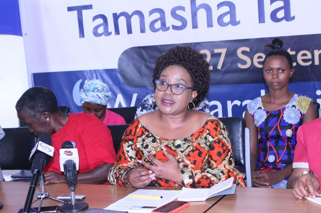 Baadhi ya wanachama wa TGNP Mtandao wakiongea na waandishi wa habari.