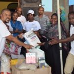 Naibu Waziri wa Mambo ya Ndani ya Nchi, Mhandisi Hamad Masauni(watatu kulia),Mjumbe kutoka Shirika la Kuwawezesha Vijana la Abdullah,Rashid Ahmed(wanne kulia) wakimkabidhi Fundi Magari, Ally Saleh(wakwanza kulia),boksi maalumu la vifaa vya ufundi wakati wa kukabidhi vifaa mbalimbali kwa vijana wajasiriamali ikiwa na lengo la kuwasaidia kukuza vipato vyao na kuwaweka mbali na makundi hatarishi.Hafla hiyo imefanyika Visiwani Zanzibar.