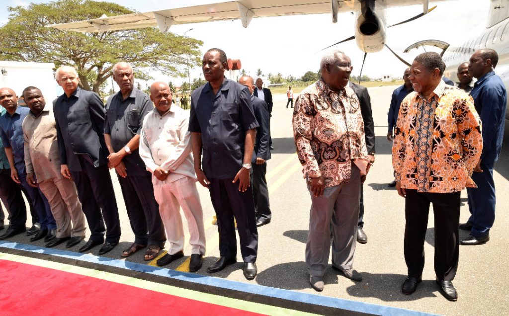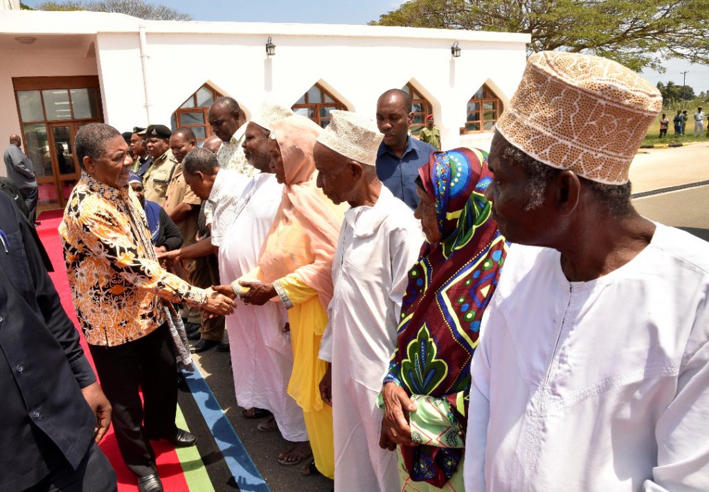 RAIS wa Zanzibar na Mwenyekiti wa Baraza la Mapinduzi Mhe.Dk. Ali Mohamed Shein, akisalimiana na Wazee wa CCM Zanzibar,Uwanja wa Ndege wa Kimataifa wa Abeid Amani Karume Zanzibar,wakati akiondoka Nchini leo kuelekea Ras Al Khaimah, katika Umoja wan chi za Falme za Kiarabu (UAE) kwa ziara ya wiki moja.(Picha na Ikulu).