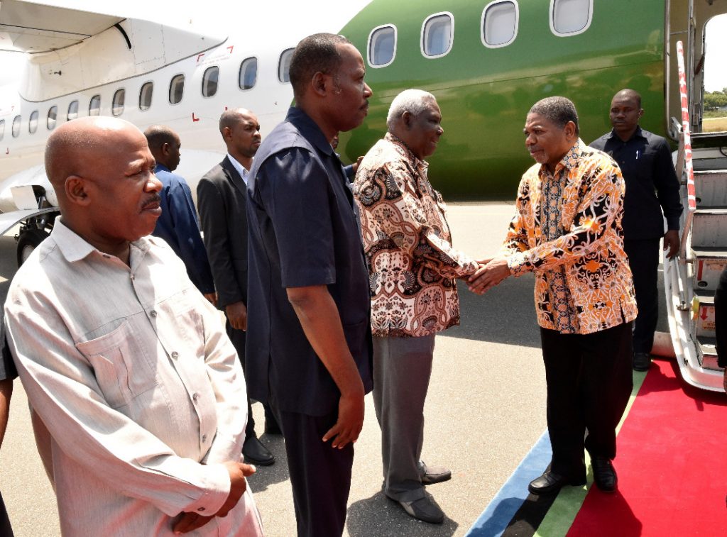 RAIS wa Zanzibar na Mwenyekiti wa Baraza la Mapinduzi Mhe.Dk. Ali Mohamed Shein, akisalimiana na kuagana na Makamu wa Pili wa Rais wa Zanzibar.Mhe. Balozi Seif Ali Iddi, katika Uwanja wa Ndege wa Kimataifa wa Abeid Amani Karume Zanzibar, wakati akiondoka Nchini leo kuelekea Ras Al Khaimah, katika Umoja wan chi za Falme za Kiarabu (UAE) kwa ziara ya wiki moja, kulia Mkuu wa Mkoa wa Mjini Magharibi Unguja.Mhe. Hassan Khatib Hassan na Mkuu wa Wilaya ya Magharibi “B” Unguja. Kapteni Silima Haji.(Picha na Ikulu)
