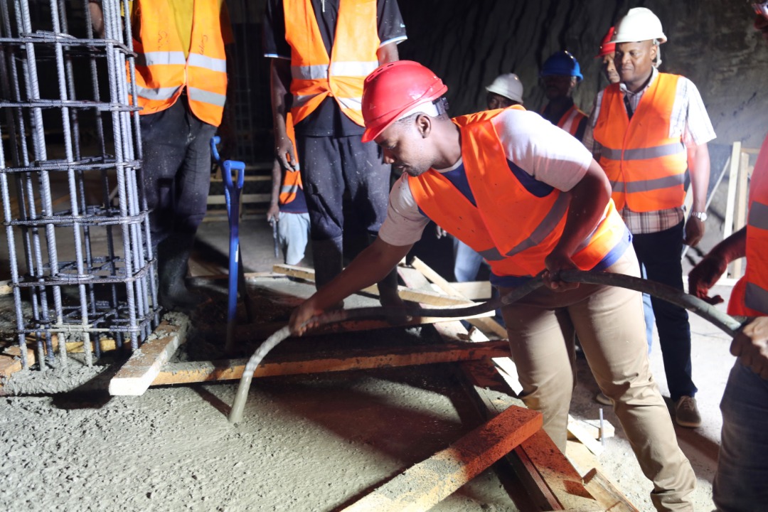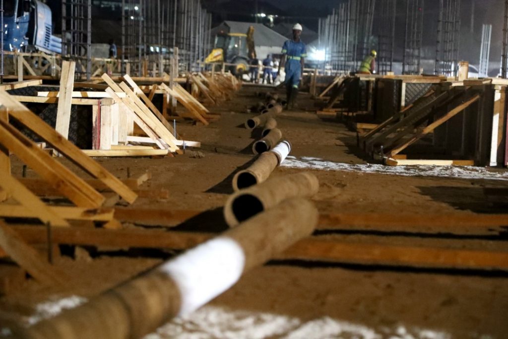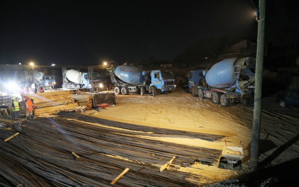 Mkuu wa Mkoa wa Dar es Salaam Mh.Paul Makonda akikagua zege lililomiminwa katika nondo kwaajili ya ujenzi wa machinjio ya kisasa ya Vingunguti jijini Dar es Salaam baada ya kutembelea na kusimamia ujenzi huo jana usiku.