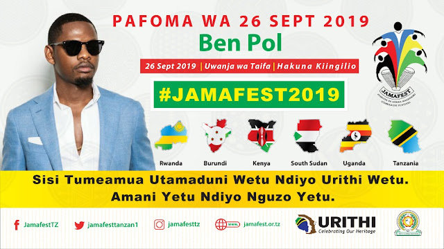Tamasha la Jamafest 2019 linazidi kunoga huku wasanii na vikundi mbali mbali vya ngoma vikijitokeza kushiriki kwa ufasaha kwa nchi za Tanzania ambao ni wenyeji, Kenya, Uganda, Rwanda na Burundi. Tamsaha hilo lililoanza Sepetemba 21 linatarajiwa kumalizika Septemba 28, 2019.