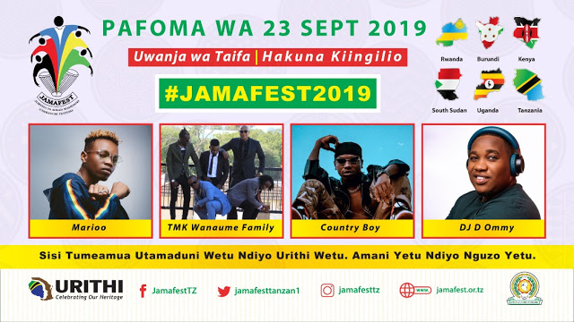 Tamasha la Jamafest 2019 linazidi kunoga huku wasanii na vikundi mbali mbali vya ngoma vikijitokeza kushiriki kwa ufasaha kwa nchi za Tanzania ambao ni wenyeji, Kenya, Uganda, Rwanda na Burundi. Tamsaha hilo lililoanza Sepetemba 21 linatarajiwa kumalizika Septemba 28, 2019.