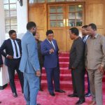 Askofu Mkuu wa Jimbo Katoliki la Dar es Salaam Mhashamu Yuda Thadeus Ruwa’ichi akimshukuru Rais wa Jamhuri ya Muungano wa Tanzania Mheshimiwa Dkt. John Pombe Magufuli ambaye alienda kumjulia hali katika Taasisi hiyo ya Mifupa Muhimbili (MOI). Wakwanza kulia ni Askofu Msaidizi Eusebius Nzigilwa wa Jimbo Kuu Katoliki Dar es Salaam, kushoto ni Padre Dkt. Alister Makubi Paroko wa Kanisa Katoliki la Mtakatifu Petro Parokia ya Oysterbay jijini Dar es salaam