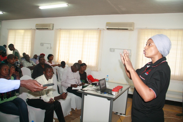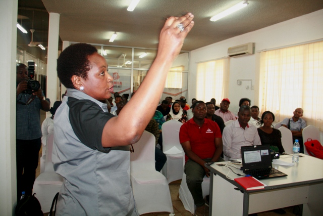 Mkuu wa kitengo cha Mawasiliano Kiwanda cha Tanga Cement Bi. Nuru Mtanga akifafanua jambo na kuwashukuru wahariri wa vyombo vya habari na waandishi wa habari kutokana na jinsi wanavyotoa ushirikiano kwa kiwanda hicho.