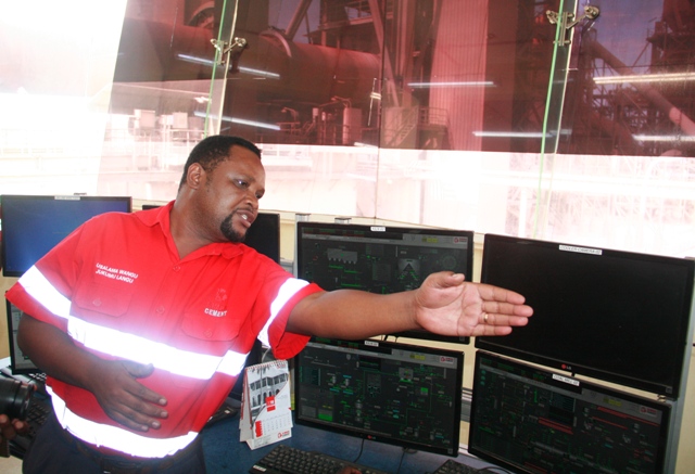 Injinia Gadiel Benjamin wa kiwanda cha Tanga Cement akifafanua jambo wakati alipokuwa akielezea namna madini hayo yanavyochakatwa mpaka kufikia viwango vya kutengeneza saruji.