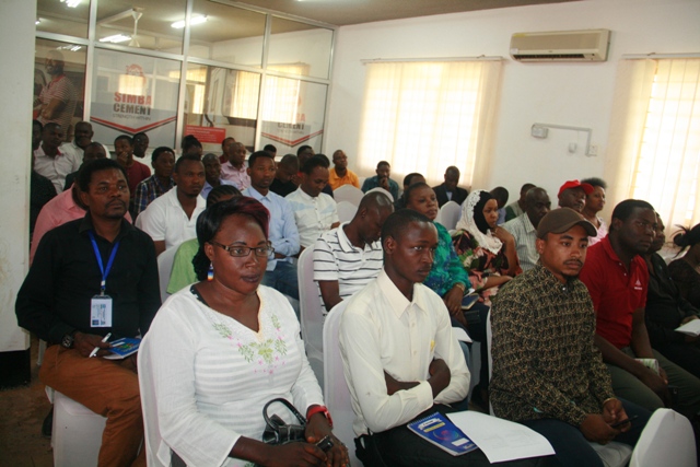 Baadhi ya Wahariri wa vyombo vya habari mbalimbali na waandishi wa habari wakiandika mambo muhimu yaliyokuwa yakizungumzwa na Mkurugenzi Mtendaji wa Kiwanda cha Tanga Cement Mkoani Tanga Bw.Reinhardt Swart wakati akizungumza nao.