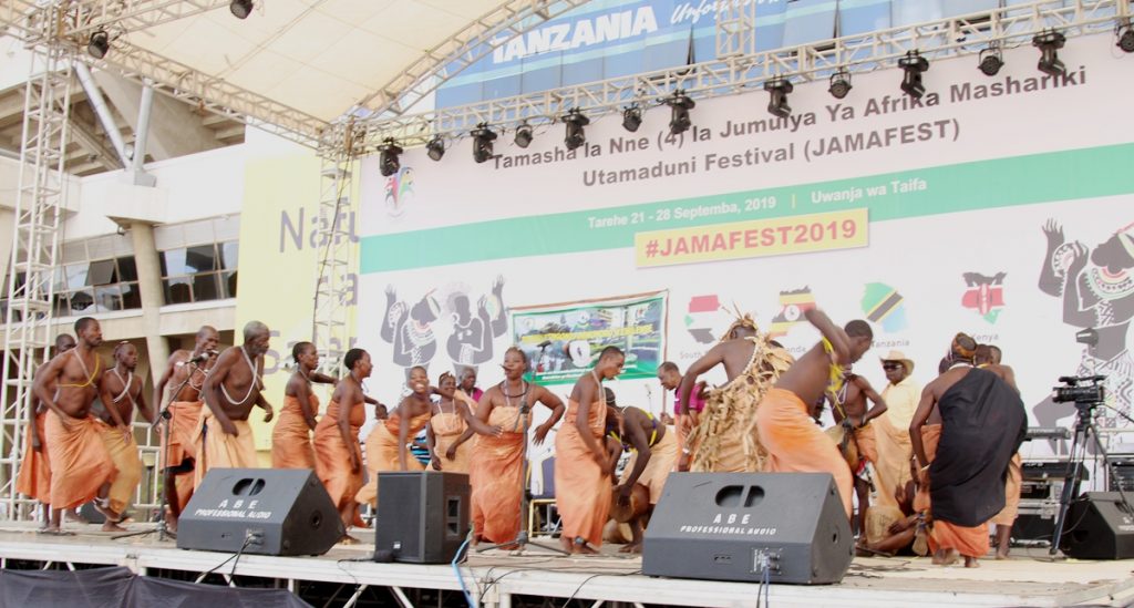 Kikundi cha ngoma toka Tanzania kikitoa burudani ya ngoma ya kabila la wanyihaS wakati wa Tamasha la Utamaduni wa nchi za Afrika Mashariki (JAMAFEST)mapema hii leo katika uwanja wa Taifa jijini Dar es Salaam.