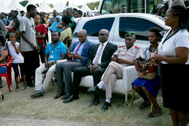 Balozi wa Burundi katika Jamhuri ya Muungano wa Tanzania Bw. Gervais Abayeho na viongozi alioambatana nao akisalimia wananchi waliofika katika Tamasha la Sanaa na Utamaduni la Jumuiya ya Afrika Mashariki linalojulikana kama JAMAFEST linalofanyika jijini Dar es Salaam, Tanzania.