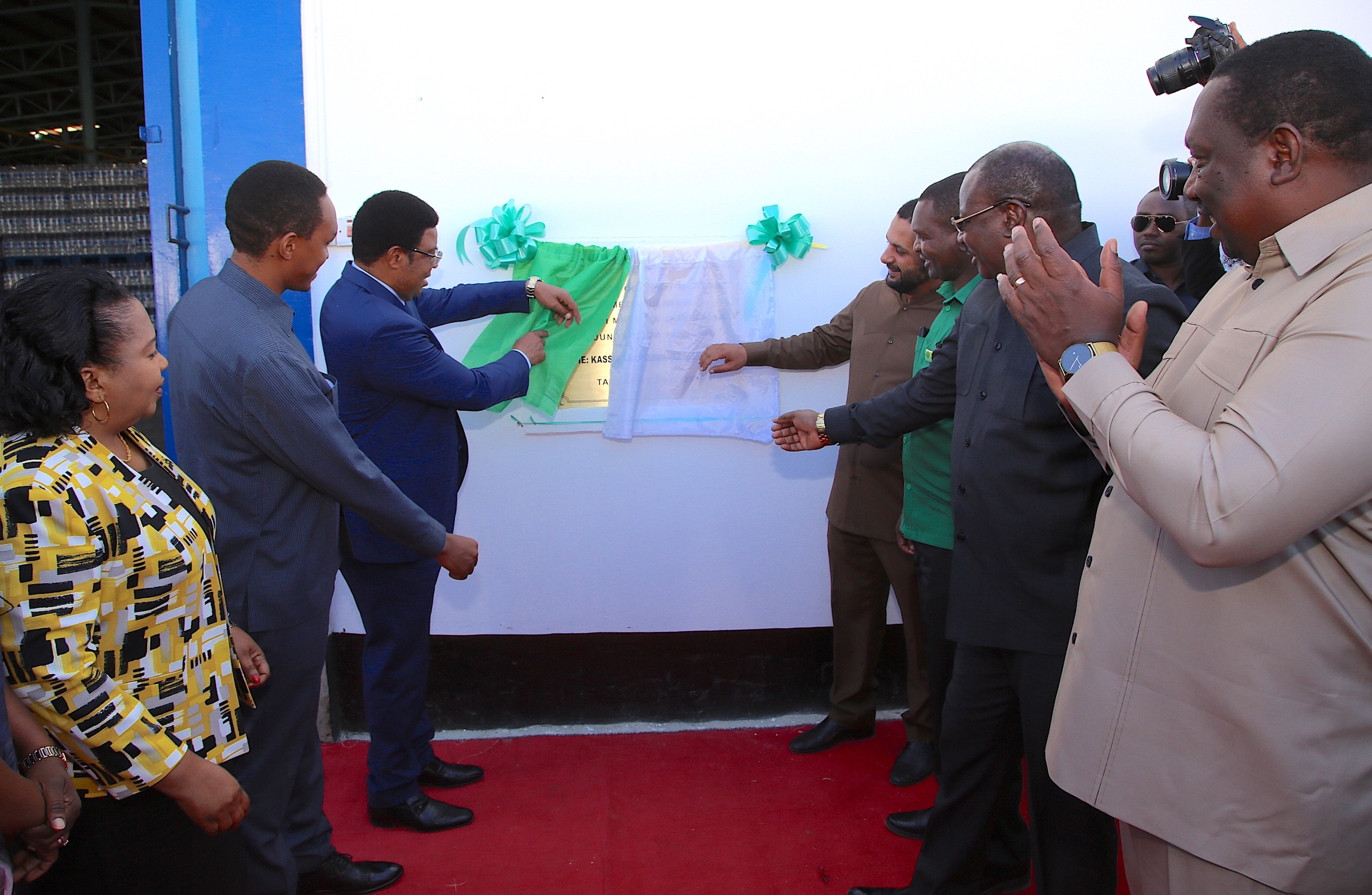 Waziri Mkuu, Kassim Majaliwa akizindua kiwanda cha maji – Mkwawa kilichopo mjini Iringa, Septemba 25, 2019. Wengine pichani kutoka kushoto ni Mke wa Waziri Mkuu,Mama Mary Majaliwa, Mkuu wa mkoa wa Iringa, Ali Happy, Mkurugenzi Mtendaji wa Kiwanda, Ahmed Huwel, Mwenyekiti wa CCM wa Mkoa wa Iringa, Dkt. Abel Nyamahnga, Naibu wa Waziri, Ofisi ya Rais TAMISEMI, Josephat Kandege na kulia ni Mkuu wa wilaya ya Iri ga, Richard Kassera.