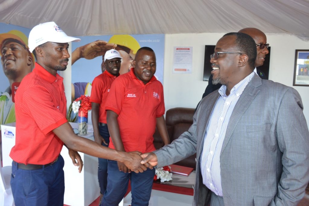 Waziri wa Nishati, Dkt. Medard Kalemani (kushoto) akimsikiliza Meneja wa Benki ya NBC Tawi la Geita, Martin Nkanda wakati wa wa maonesho ya pili ya Teknolojia na Uwekezaji kwenye Sekta ya Madini yanayofanyika katika Viwanja vya CCM Kalangalala mjini Geita. Katikati ni Meneja wa NBC kanda ya ziwa, Japhet Mazumira. NBC ni mmoja ya wadhamini wa maonesho hayo.Naibu Waziri wa Maliasili na Utalii, Constantine Kanyasu (kushoto) akisalimiana na Meneja wa Benki ya NBC Tawi la Geita, Martin Nkanda katika Maonesho ya pili ya Teknolojia na Uwekezaji kwenye Sekta ya Madini yanayofanyika katika Viwanja vya CCM Kalangalala mjini. Katikati ni Meneja wa NBC kanda ya ziwa, Japhet Mazumira.Waziri Mkuu, Kassim Majaliwa (kushoto), akisalimiana na Meneja wa Benki ya NBC Tawi la Geita, Martin Nkanda wakati akiwasili katika hafla ya Ufunguzi wa Maonesho ya pili ya Teknolojia na Uwekezaji kwenye Sekta ya Madini yaliyofanyika katika Viwanja vya CCM Kalangalala mjini Geita hivi karibuni. Wapili kulia ni Meneja wa NBC kanda ya ziwa, Japhet Mazumira. NBC inadhamini maonyesho hayo.Waziri Mkuu, Kassim Majaliwa (kushoto), akisalimiana na Meneja wa NBC Kanda ya Ziwa, Japhet Mazumira, akipokwenda kufungua rasmi maonesho hayo.Mkuu wa Mkoa wa Geita, Mhandisi Gabriel Robert (kulia) akisalimiana na Meneja wa NBC kanda ya ziwa, Japhet Mazumira wakati akitembelea banda la benki hiyo katika Maonesho ya pili ya Teknolojia na Uwekezaji kwenye Sekta ya Madini yanayofanyika katika Viwanja vya CCM Kalangalala mjini Geita. Katikati ni Meneja Uendeshaji Tawi, Thadei Tibalinda.Mkuu wa Mkoa wa Mara, Adam Malima (kulia), akisalimiana na Ofisa Huduma kwa Wateja, Aggrey Kanani wakati akitembelea banda la Benki hiyo wakati wa Maonesho ya pili ya Teknolojia na Uwekezaji kwenye Sekta ya Madini yanayofanyika katika Viwanja vya CCM Kalangalala mjini Geita. Katikati ni Meneja wa NBC kanda ya ziwa, Japhet Mazumira.