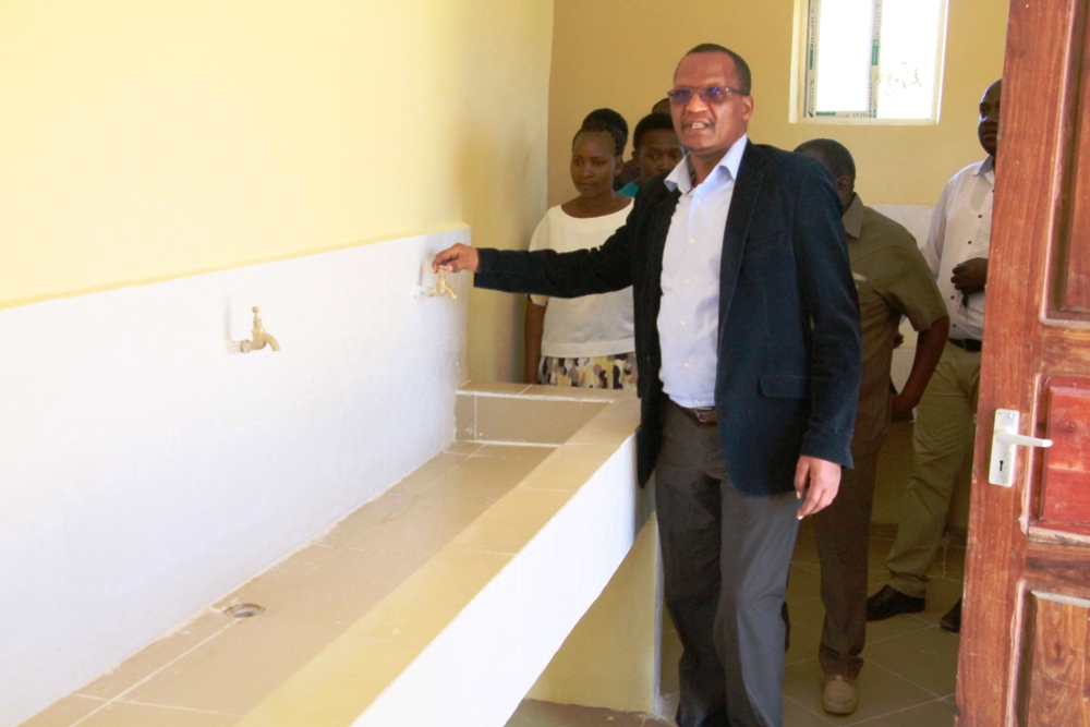 Katibu Mkuu Wizara ya Afya Idara Kuu Maendeleo ya Jamii Dkt John Jingu akiangalia moja Sehemu za Jengo la Chuo cha Maendeleo ya Jamii Ruaha kilichopo nje Kidogo ya Manispaa ya Iringa ambacho kinaendelea na ukarabati wa baadhi ya Majengo yake ili kuweka mazingira mazuri ya kujifunza kufundishia chuoni hapo.