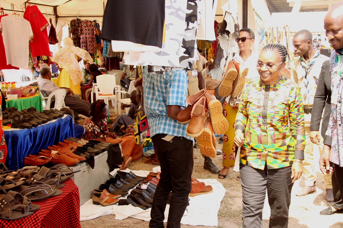 Naibu Waziri wa Viwanda na Biashara, Mhandisi Stella Manyanya akizunguka katika mabanda mbalimbali wakati alipotembelea maonesho ya Tamasha la Utamaduni wa Nchi za Afrika Mashariki hii leo katika Uwanja wa Taifa jijini Dar es Salaam.