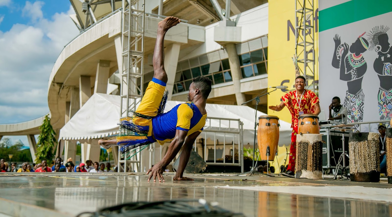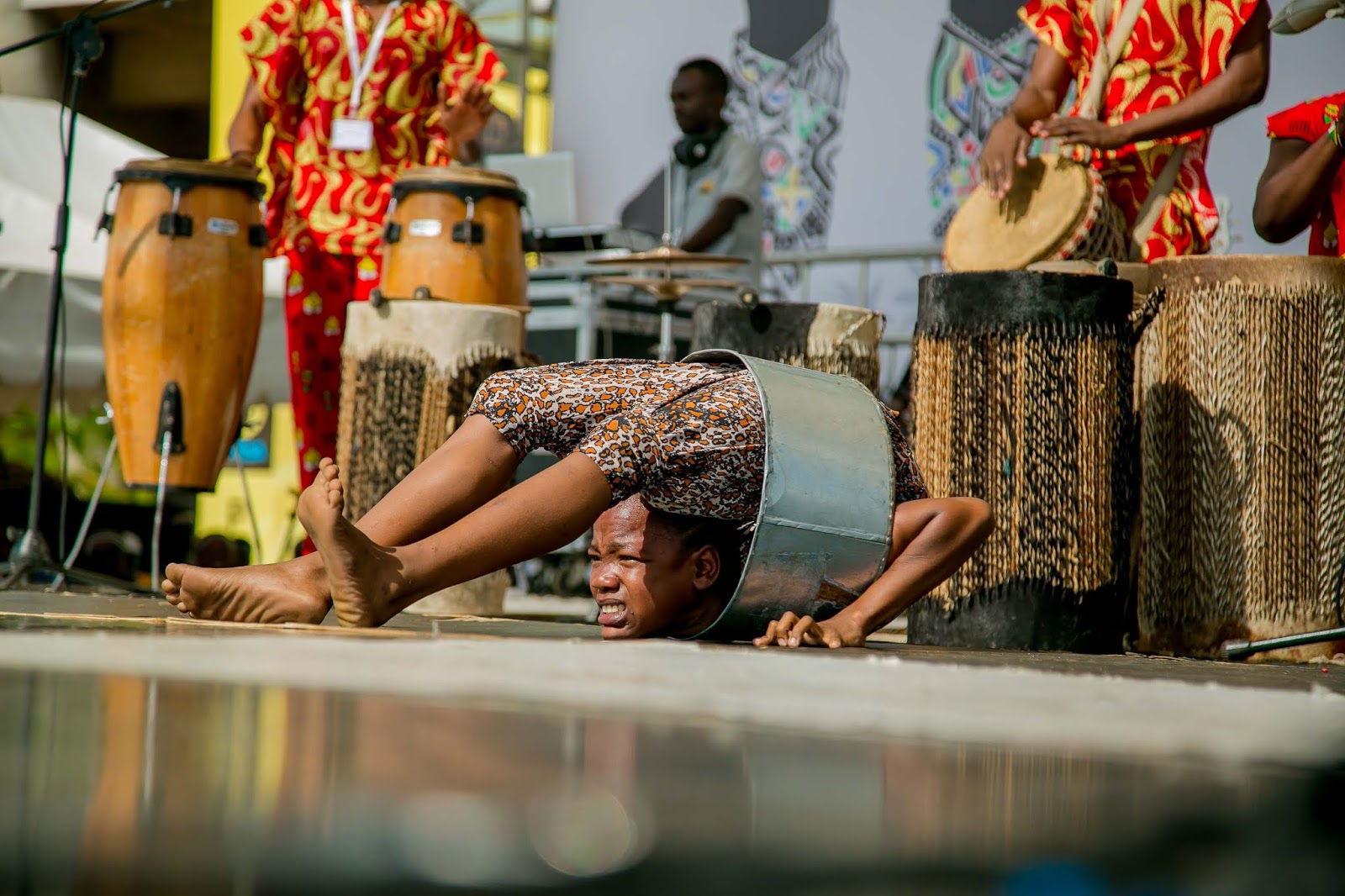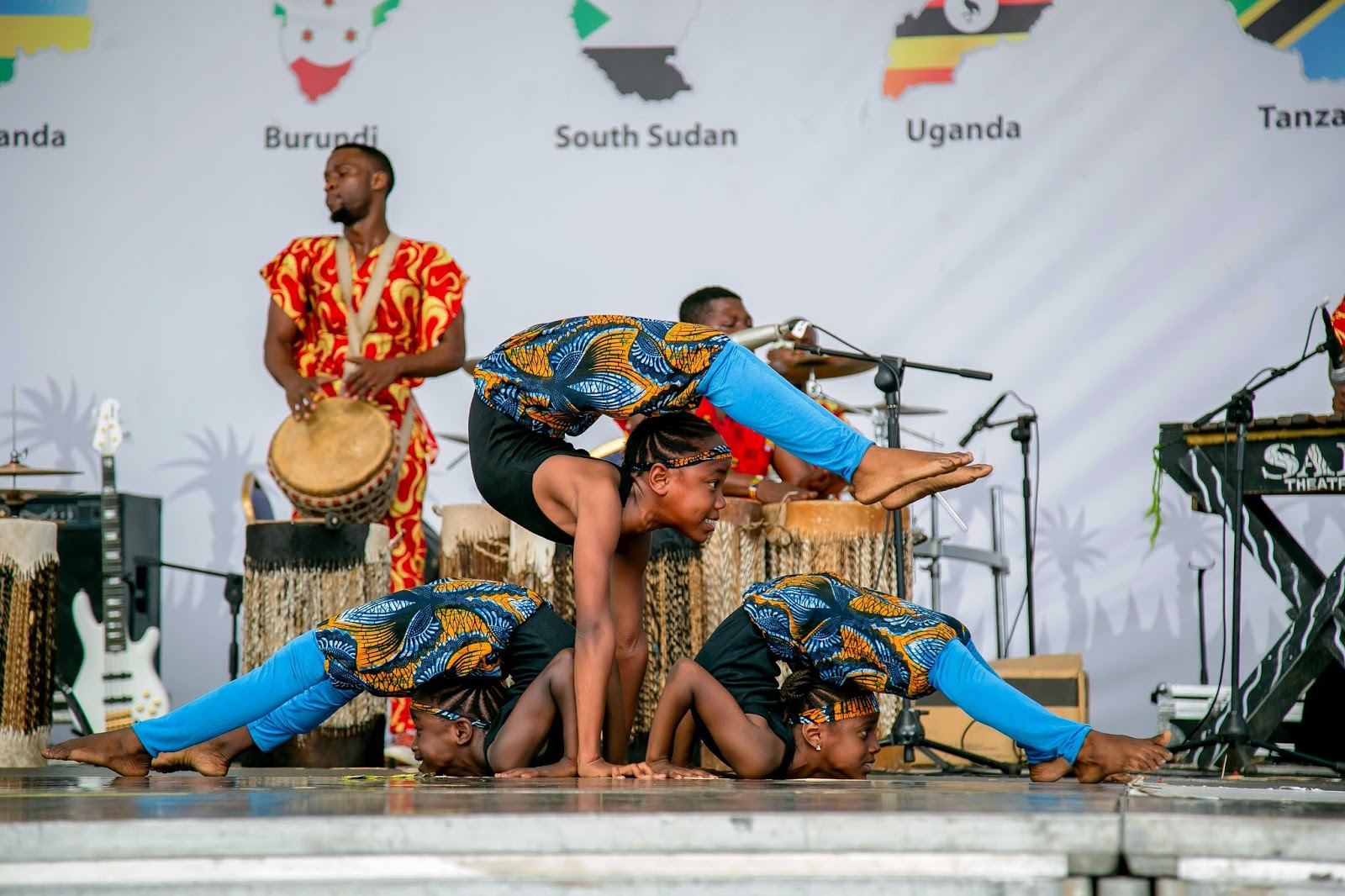 Vijana wa Kikundi cha ngoma na sarakasi cha Safi wakionyesha umahili wao katika Tamasha la Sanaa na Utamaduni la Jumuiya ya Afrika Mashariki linalojulikana kama JAMAFEST linalofanyika jijini Dar es Salaam, Tanzania. Tamasha hilo limeanza Septemba 21 na linatarajiwa kuisha 28, 2019.