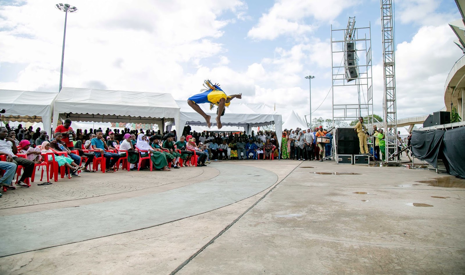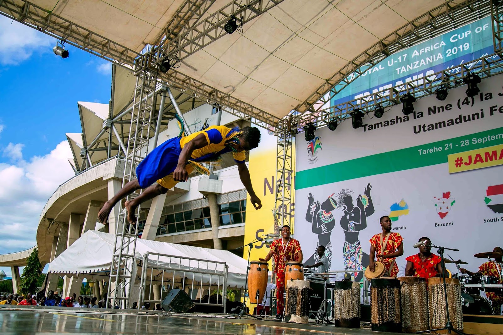 Kikundi cha Ngoma na Sarakasi cha Safi kutoka nchini Tanzania kikitoa burudani katika Tamasha la Sanaa na Utamaduni la Jumuiya ya Afrika Mashariki linalojulikana kama JAMAFEST linalofanyika jijini Dar es Salaam, Tanzania. Tamasha hilo limeanza Septemba 21 na linatarajiwa kuisha 28, 2019.