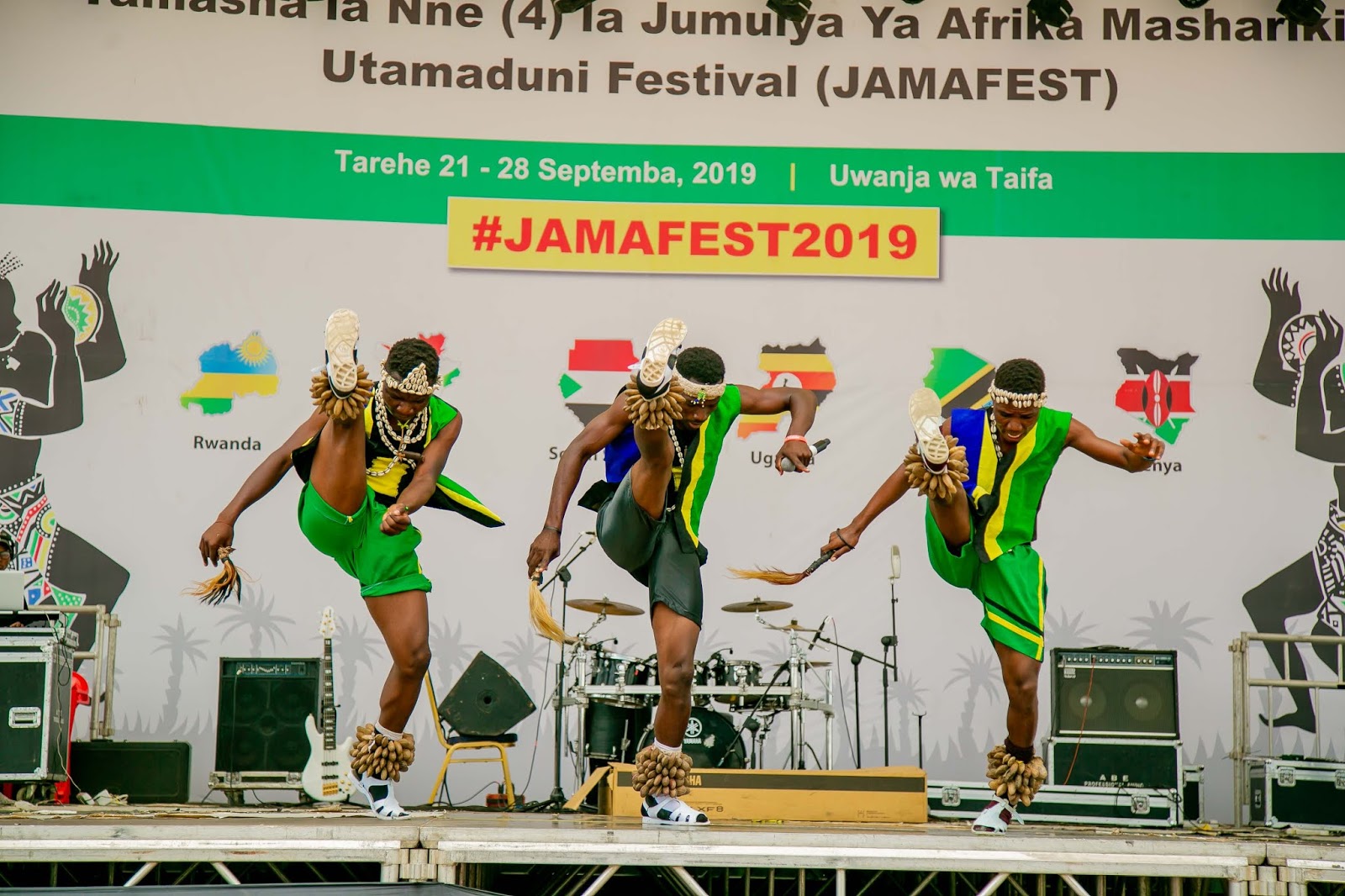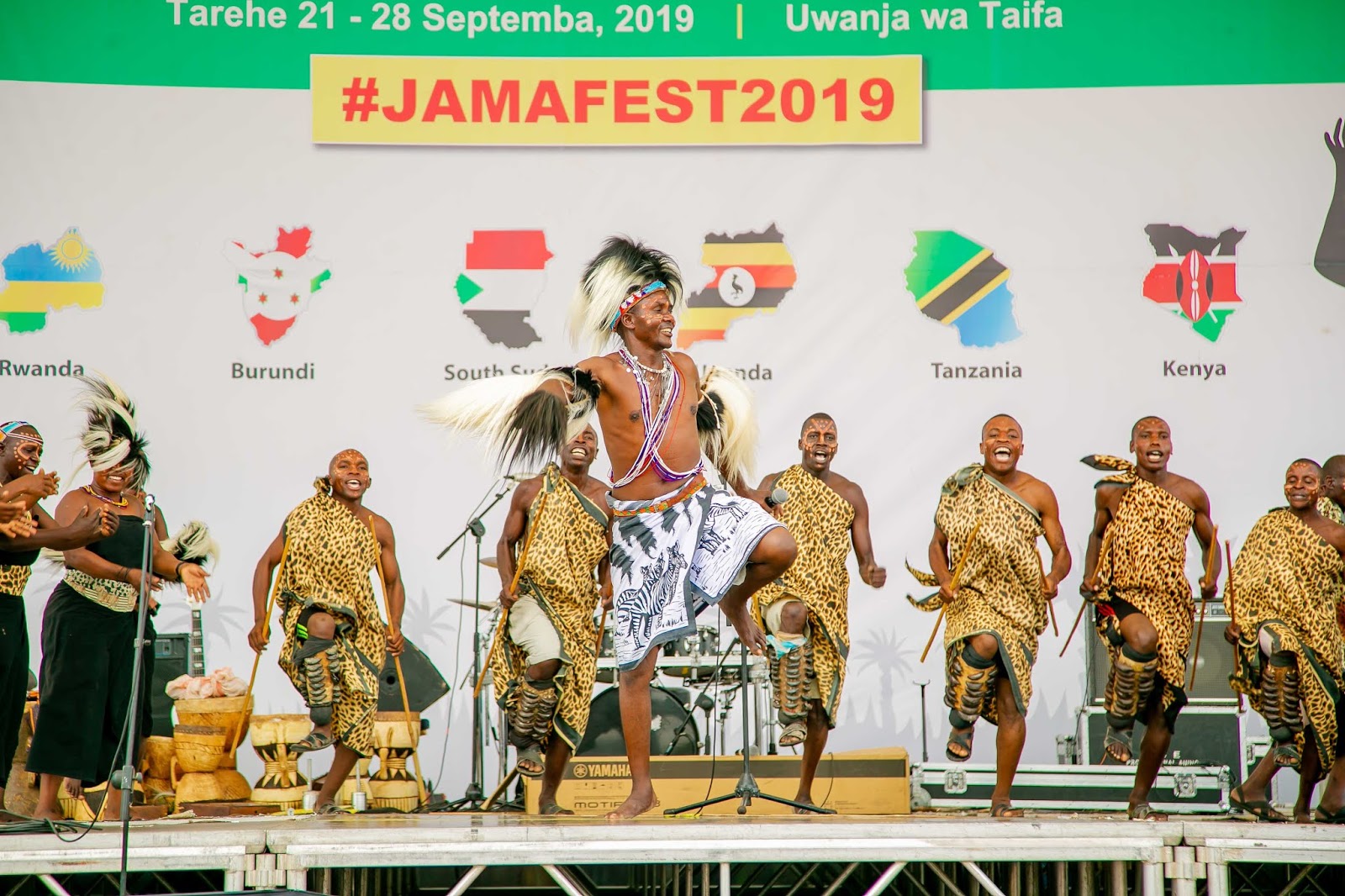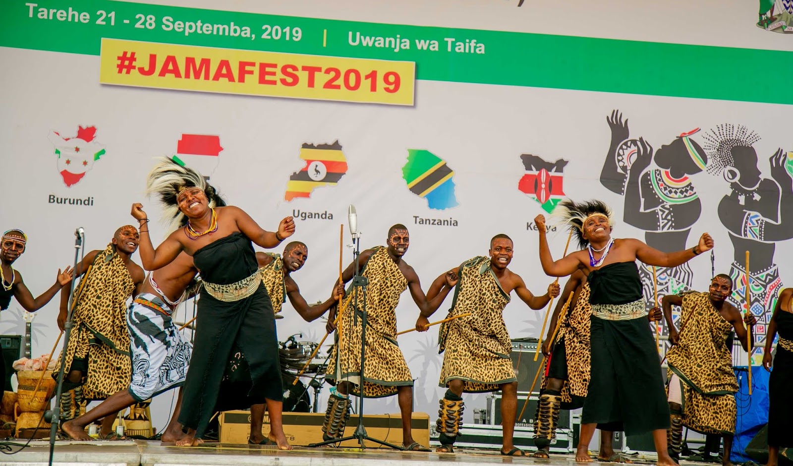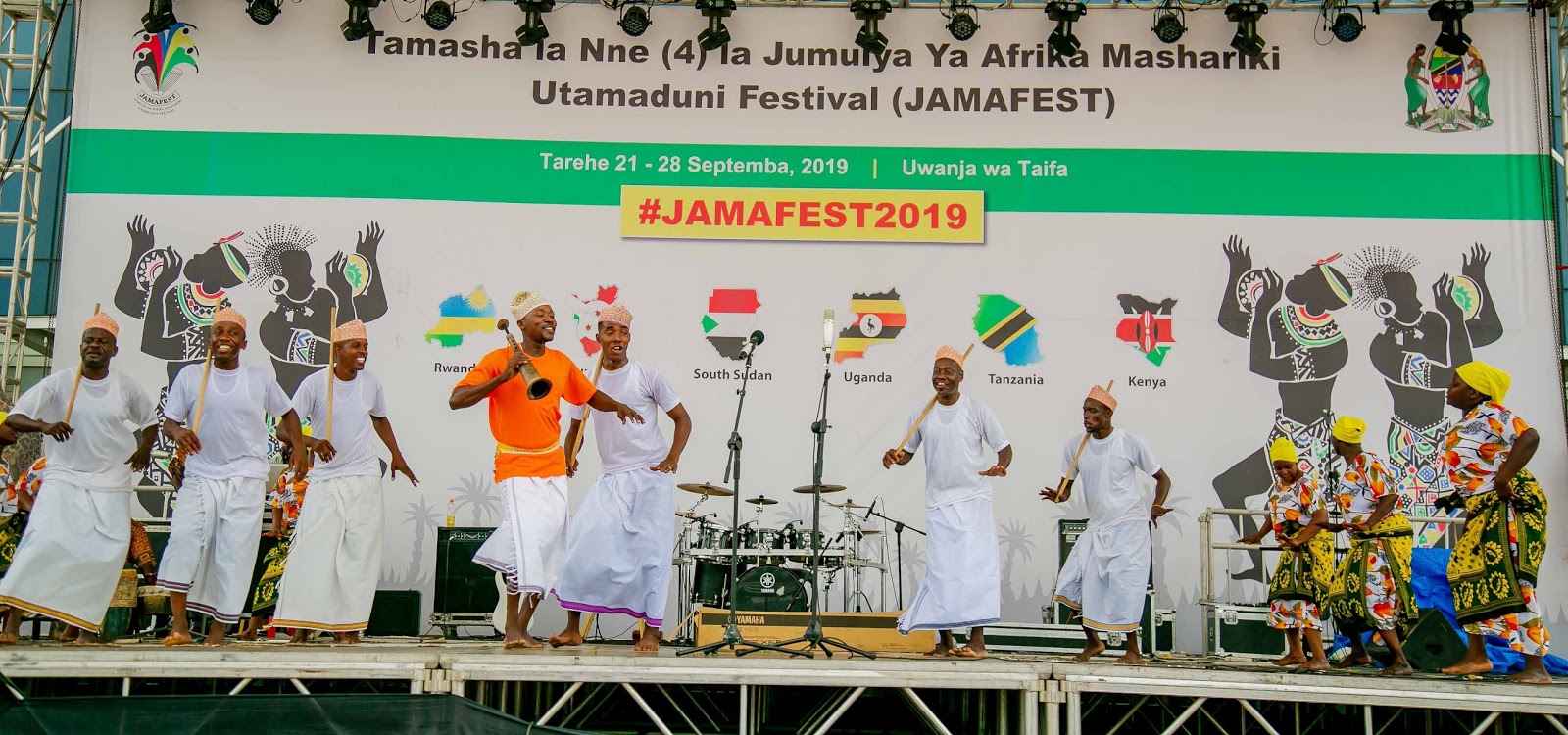 Wakiwaaga wanajumuiya wa Afrika Mashariki waliohudhuria katika Tamasha la Sanaa na Utamaduni la Jumuiya ya Afrika Mashariki linalojulikana kama JAMAFEST linalofanyika jijini Dar es Salaam, Tanzania. Tamasha hilo limeanza Septemba 21 na linatarajiwa kuisha 28, 2019.