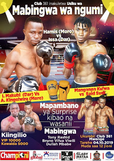 Kwa upande wake mratibu wa kiufundi wa mapambano hayo Yassin Abdalah Ustaadh aliwataja mabondia watakaosindikiza sherehe hiyo kuwa ni issa nampechehe (Dsm) vs alli hamisi (morogoro ).