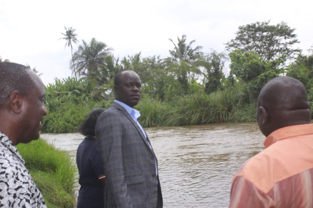 NAIBU Waziri wa Maji Jumaa Aweso ambaye pia ni Mbunge wa Jimbo la Pangani (CCM) kushoto akiangalia chanzo cha maji cha Mto Pangani kilichopo eneo la Mandera wilayani Korogwe wakati wa ziara yake ya kukagua chanzo hicho leo.