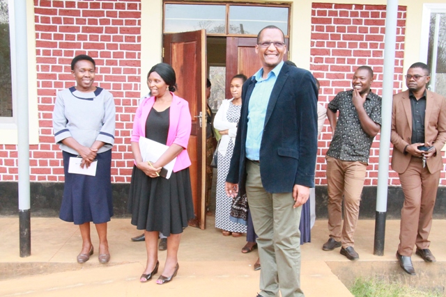 Katibu Mkuu Wizara ya Afya Idara Kuu Maendeleo ya Jamii Dkt. John Jingu akifuraia Jambo mara baada ya kukagua ukarabati wa mabweni ya wanafunzi katika Chuo cha Maendeleo ya Jamii Mlale kilichopo kata ya Magagula Wilaya Songea Mkoani Ruvuma mapema jana.