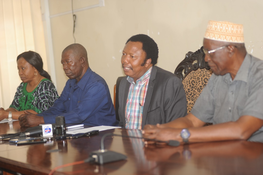 Kamishna wa Ustawi wa Jamii Dkt. Naftali Ng’ondi akizungumza na waandishi wa habari leo mkoani Mtwara kuhusu Maadhimisho ya Siku ya Wazee Duniani Oktoba Mosi yatakayofanyika Kitaifa Mkoani Mtwara kulia ni Mwenyekiti wa Baraza la Wazee Mkoa wa Mtwara Meja Mstaafu Mohamed Mbwana, kushoto ni Kamishna Msaidizi wa Ustawi wa Jamii Bi. Mwanaisha Moyo na wa pili kushoto ni Katibu wa Baraza la Wazee Mkoa wa Mtwara Mzee Seif Namtapika.