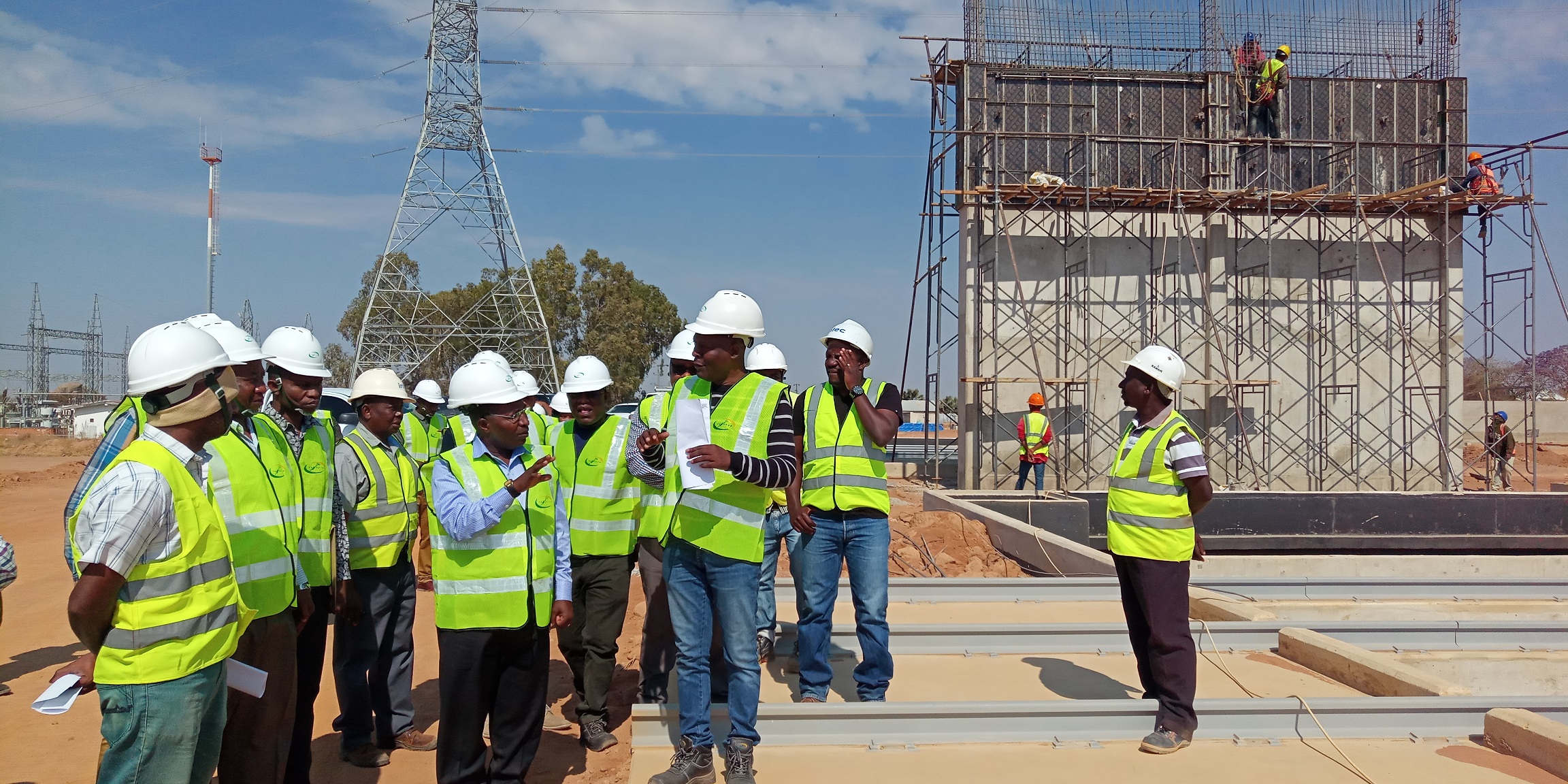 Vibarua wakiendelea na kazi ya ujenzi wa upanuzi wa kituo cha kupoza na kusambaza umeme cha Singida, wakati Waziri wa Nishati, Dkt.Medard Kalemani, alipofanya ziara ya kukagua shughuli za ujenzi katika kituo hicho.