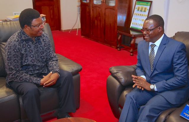 Waziri Mkuu, Kassim Majaliwa akizungumza na Katibu Mkuu mpya wa Ofisi ya Waziri Mkuu (Bunge na Waziri Mkuu), Tixon Nzunda, ofisini kwa Waziri Mkuu, Mlimwa jijni Dodoma, Septemba 30, 2019. (Picha na Ofisi ya Waziri Mkuu)