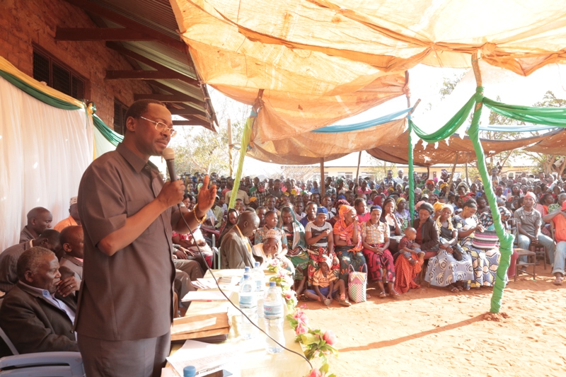 Waziri wa Nchi Ofisi ya Makamu wa Rais (Muungano na Mazingira) Mhe. George Simbachawene ambaye alikuwa mgeni rasmi kwenye mahafali ya kidato cha nne ya Shule ya Sekondari Pwaga Wilayani Mpwapwa Jimbo la Kibakwe akizungumza na wanafunzi na wananchi.