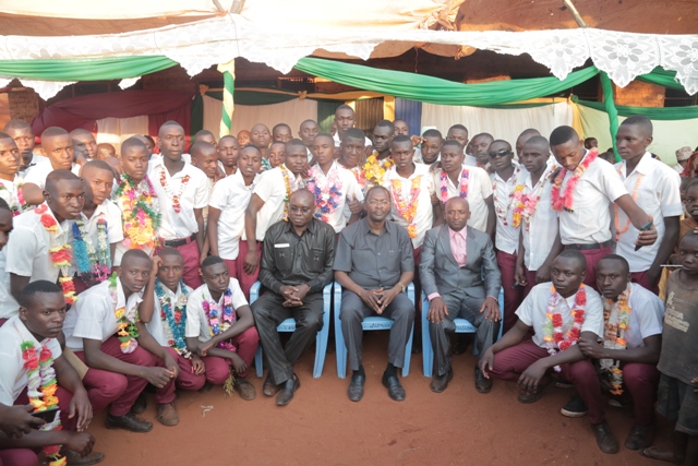 Wahitimu wa kidato cha nne Shule ys Sekondari Pwaga wakiwa katika picha ya pamoja na mgeni rasmi Waziri wa Nchi Ofisi ya Makamu wa Rais (Muungano na Mazingira) Mhe. George Simbachawene.