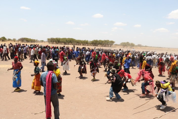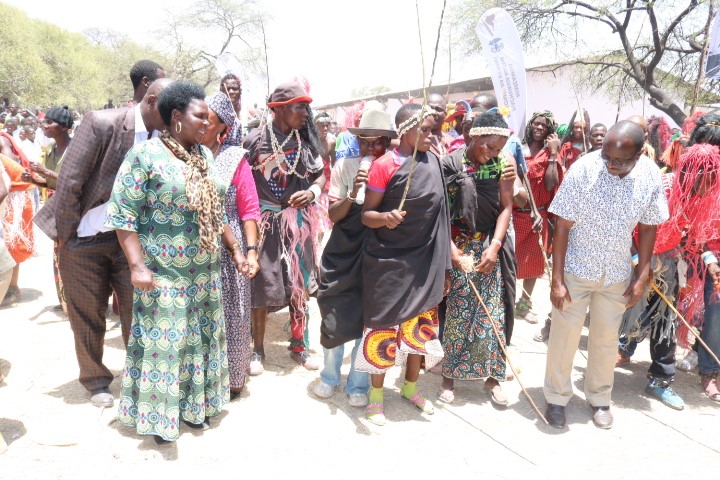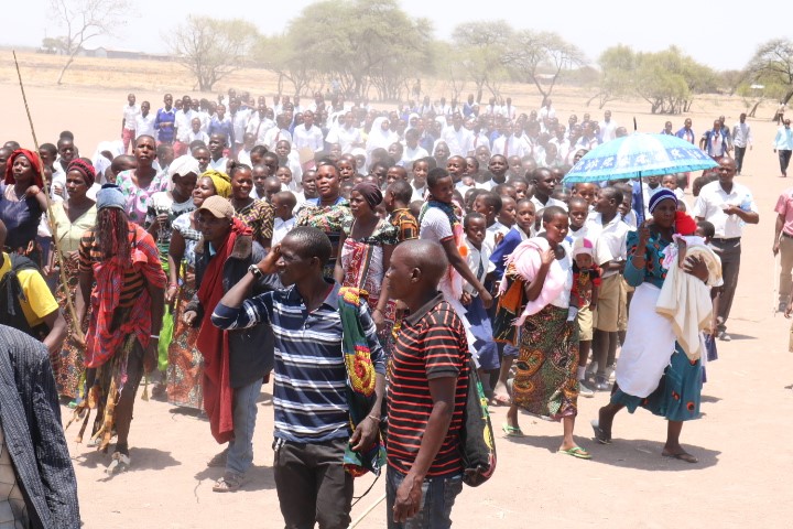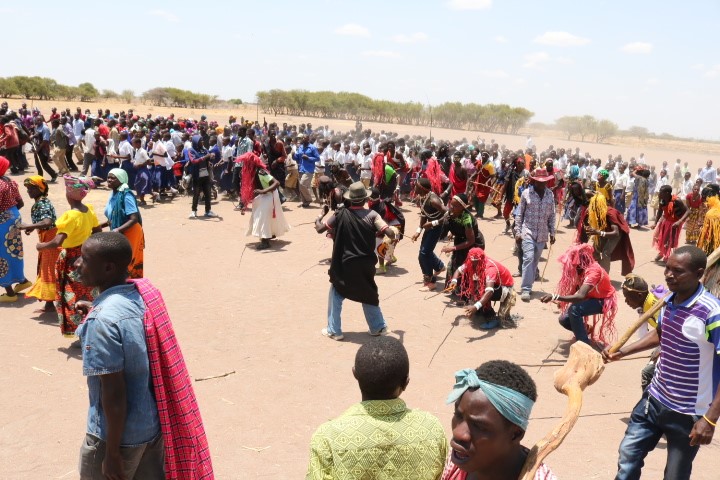 Vikundi vya ulinzi wa jamii (Sungusungu) vikiwasili kwenye uzinduzi wa kampeni hiyo kwa kucheza ngoma za asili ya kabila la kisukuma.