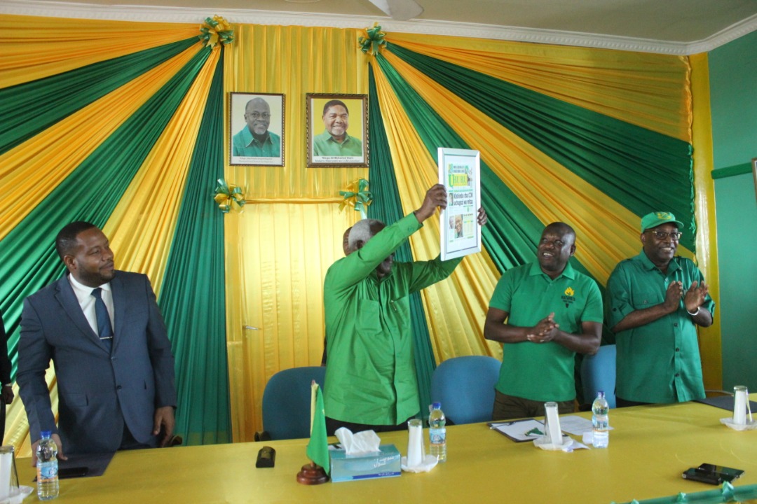 MJUMBE wa Kamati Kuu ya Chama Cha Mapinduzi (CCM) Taifa Balozi Seif Ali Idd, na Viongozi mbali mbali wa CCM wakionyesha Magazeti ya Uhuru wa Kijani mara baada ya kuzinduliwa kwa upande wa Zanzibar, yanayomilikiwa na kampuni ya Uhuru Media Group (UMG).