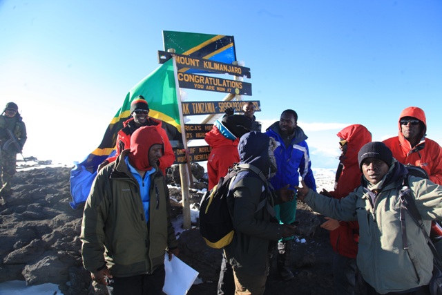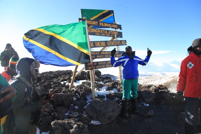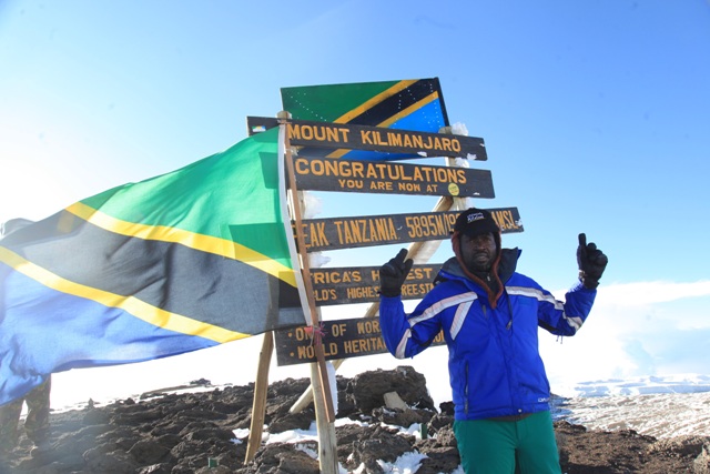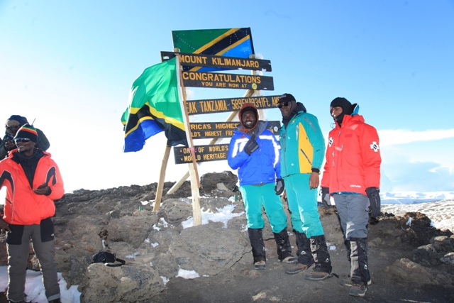 Waziri wa Maliasili na Utalii Dkt. Hamisi Kigwangalla akiwa katika kilele cha mlima Kilimanjaro, Oktoba 2, 2019.