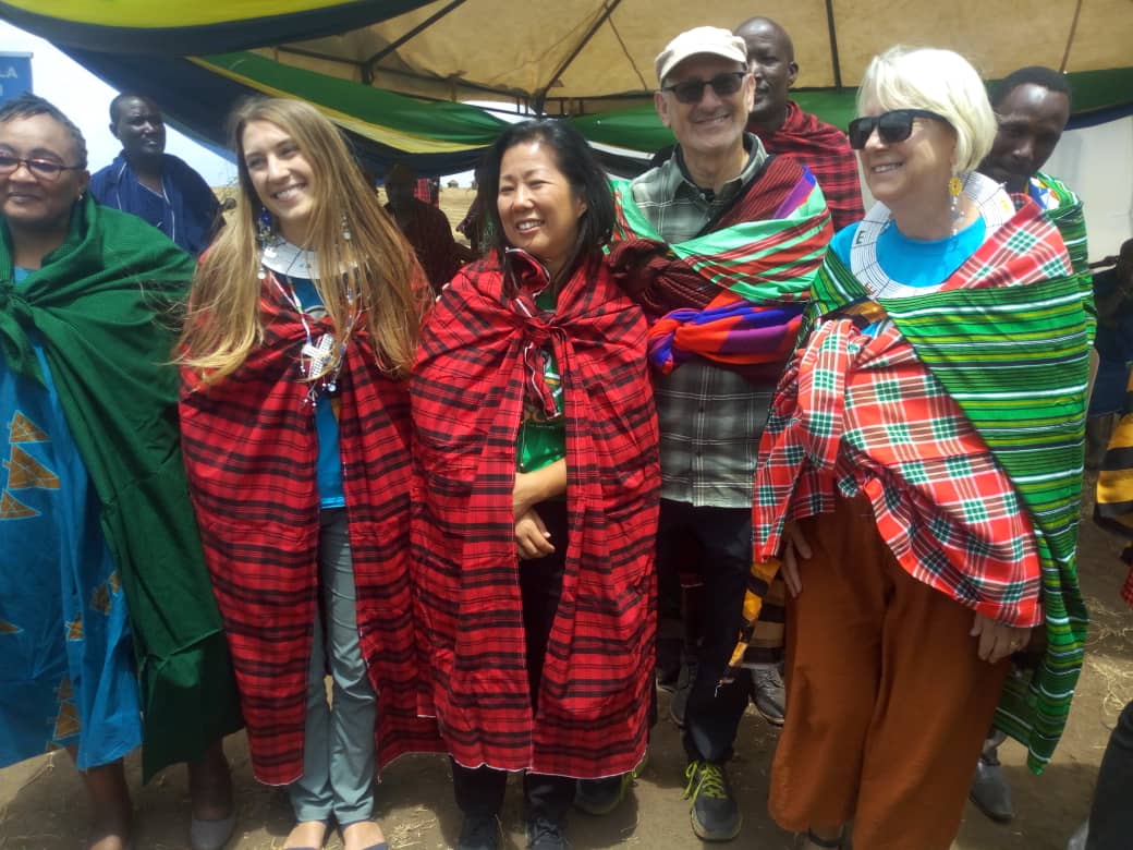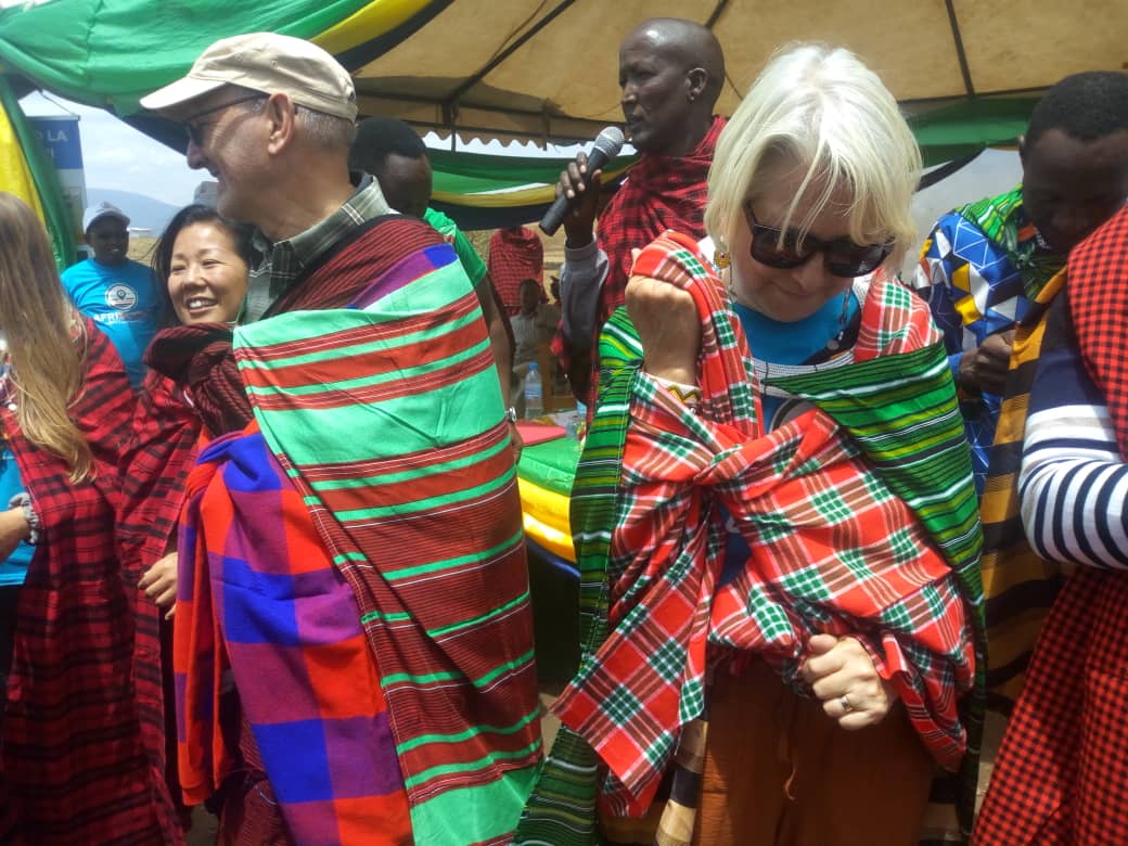 Kaimu Mkurugenzi wa PCI, Jennifer Waugaman akiwa na Mratibu wa PCI ncuini, John Lafa(kulia) wakipewa zawadi baada ya kuzindua mradi huo.