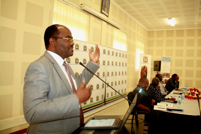 Dkt. Lyabwene Mtahabwa Kamishna wa Elimu akiwasilisha mada kuhusu elimu ya Awali wakati wa kikao hicho.