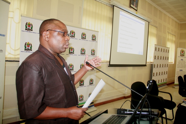 Makuru Petro Kaimu Mkurugenzi wa Sera na Mipango Wizara ya Elimu, Sayansi na Teknolojia akiwasilisha mada ya sera na mipango ya wizara hiyo katika kikao hicho.