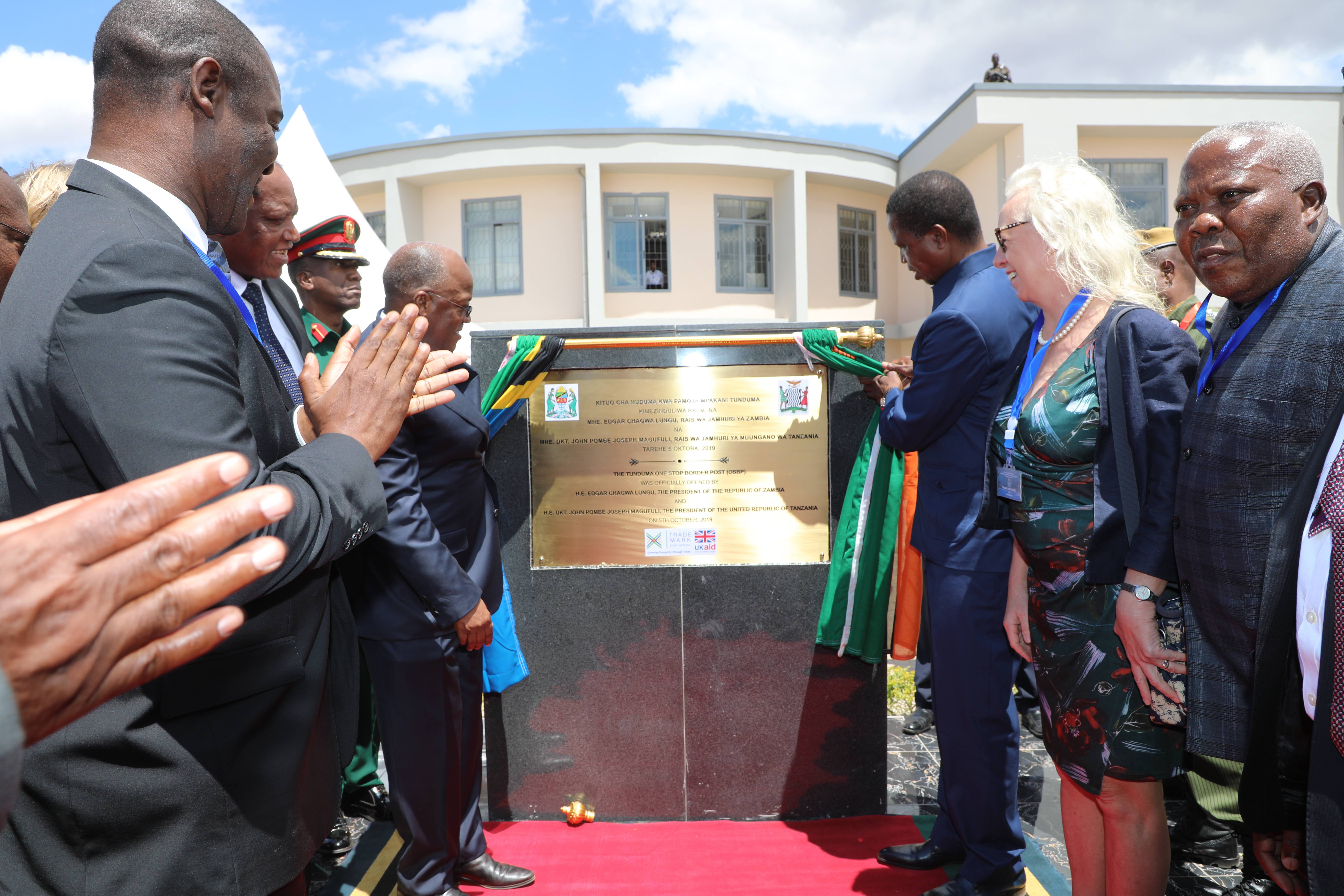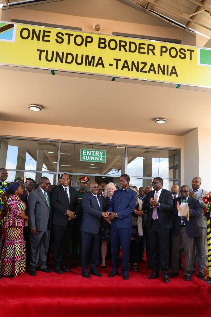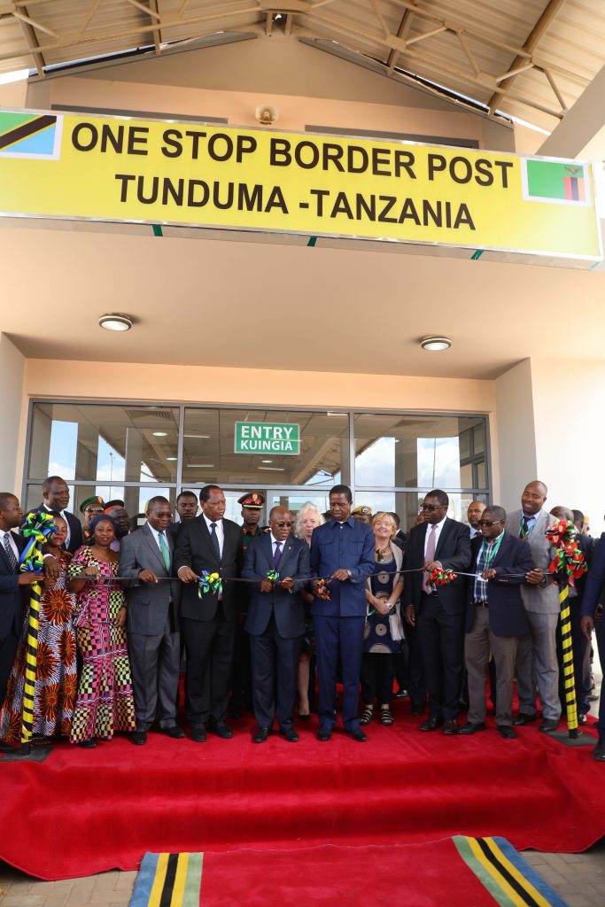 wakifunua kitambaa kuashiria uzinduzi wa Kituo cha Mpakani cha