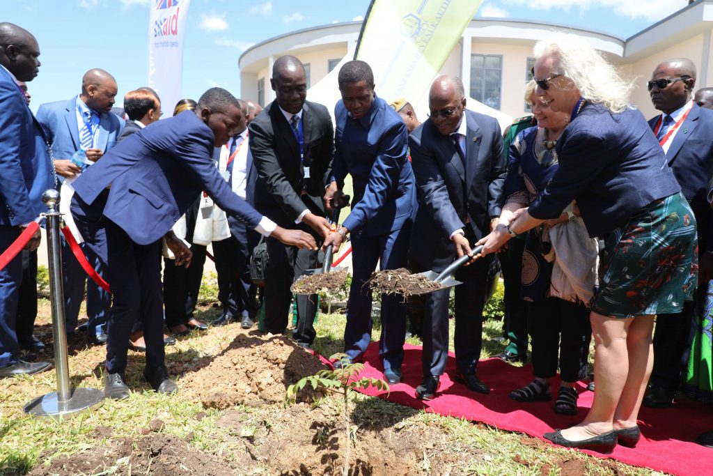 Rais Dkt John Pombe Magufuli na Rais Edgar Lungu wa Zambia wakiwa na wafadhili wa mradi wakipanda mti kama kumbukumbu baada ya kuzindua Kituo cha Mpakani cha Tunduma-Nakonde One-Stop Border Post upande wa Tanzania Leo Jumamosi Oktoba 5, 2019