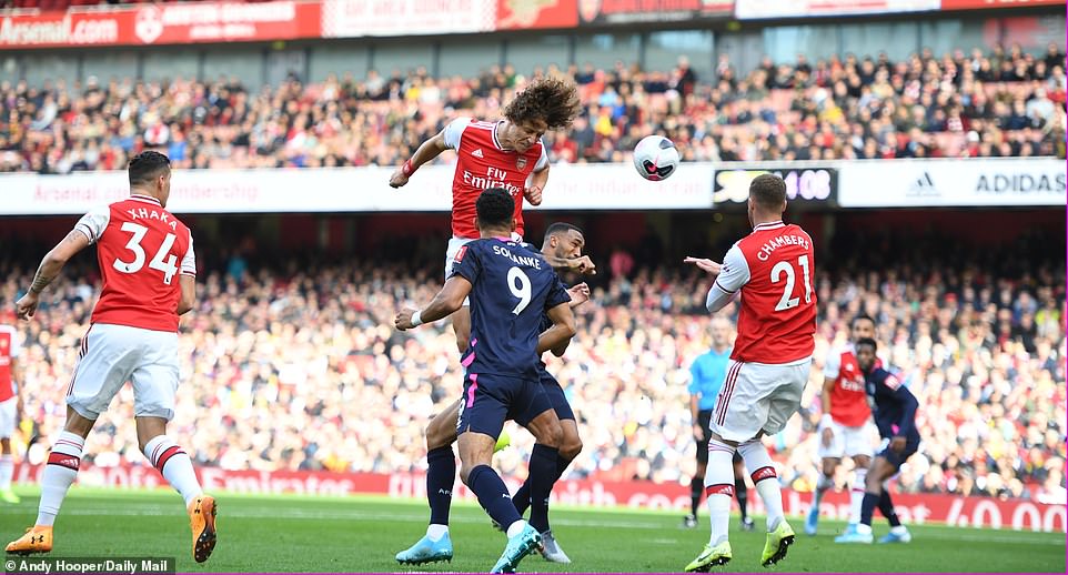 Beki Mbrazil, David Luiz akiwa juu kabisa kupiga mpira kichwa kuifungia bao pekee Arsenal dakika ya tisa ikiilaza 1-0 AFC Bournemouth katika mchezo wa Ligi Kuu ya England jana Uwanja wa Emirates mjini London PICHA ZAIDI SOMA HAPA