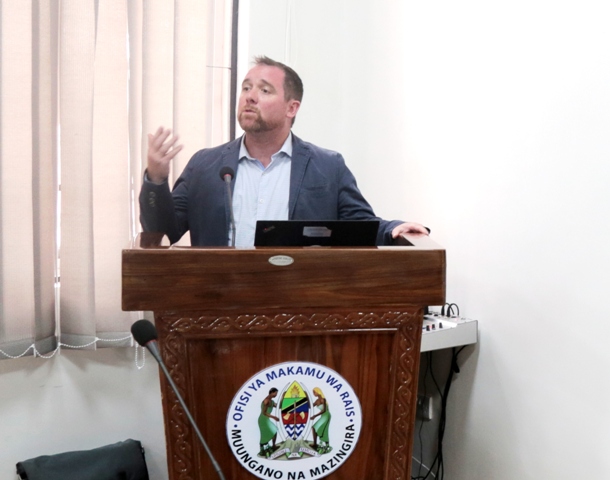 Mtaalamu Mwandamizi wa Masuala ya Maendeleo Mijini na Usimamizi wa Majanga Kanda ya Afrika kutoka Benki ya Dunia Eric Dickson akitoa maelezo kuhusu Mradi wa kuzisaidia Halmashauri na Serikali Kuu katika kukabiliana na athari zitokanazo na mabadiliko ya tabianchi