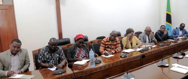 Watendaji kutoka Ofisi ya Makamu wa Rais wakiwa na Naibu Katibu Mkuu Balozi Joseph Sokoine (kulia) wakiwa katika kikao na Benki ya Dunia (WB) pamoja na Shirika la Maendeleo la Uingereza (DFID) katika kikao kuhusu mradi wa TURP ambao ukitekelezwa utaleta manufaa makubwa katika Jiji la Dar es Salaam na utaokoa maeneo yaliyo hatari kwa mafuriko na kuyafanya salama kwa maendeleo ya Jiji, utapendezesha kwa kuweka maeneo mazuri ya maegesho ya magari maeneo kwa ajili ya shughuli za umma kama mikutano na matamasha na kubadilisha eneo la Mto Msimbazi linalokumbwa na mafuriko kuwa eneo linalofaa kwa ajili ya michezo na lenye manufaa ya kiikolojia kwa jiji la Dar es Salaam