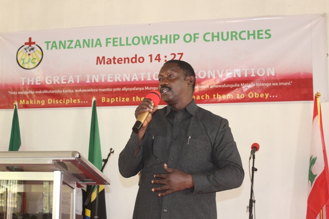 Naibu Meya wa Halmashauri ya Jiji la Dodoma, Emanuel Chibago akizungumza wakati wa hafla ya kufunga Kongamano kubwa la kimataifa ambalo huandaliwa na kanisa la Tanzania Fellowship of Churches, lenye lengo la kufanya tathmini ya utendaji wa makanisa yote ya nje na ndani ya nchi, lililofanyika kwa wiki nzima jijini Dodoma.